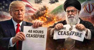तेहरान/वॉशिंगटन: पश्चिम एशिया से इस वक्त की सबसे बड़ी और चिंताजनक खबर सामने आ रही है। ईरान ने अमेरिका द्वारा दिए गए 48 घंटे के युद्धविराम (Ceasefire) के प्रस्ताव को औपचारिक रूप से ठुकरा दिया है। ‘अल जजीरा’ ने ईरान की अर्ध-सरकारी ‘फार्स न्यूज एजेंसी’ के हवाले से इस खबर …